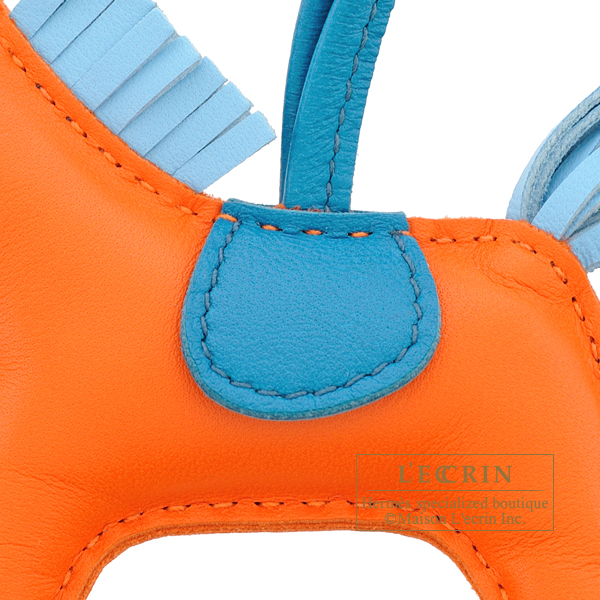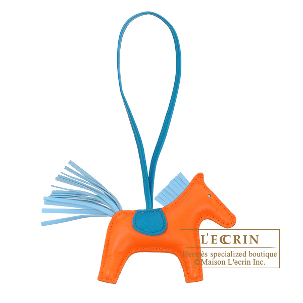Hermes Rodeo charm PM Feu/Celeste Agneau