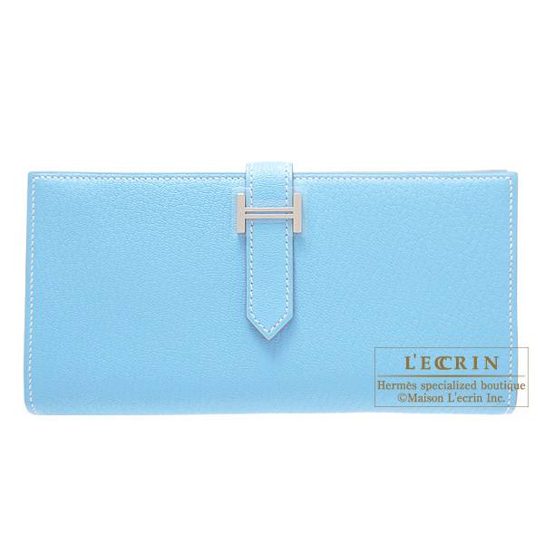 Hermes Bearn Soufflet Celeste Chevre myzore goatskin Silver hardware