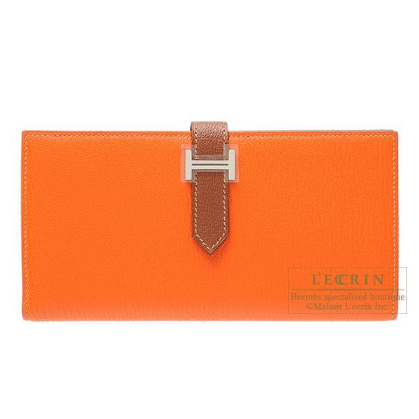 Hermes Bearn Soufflet Feu/Noisette Chevre myzore goatskin Silver hardware