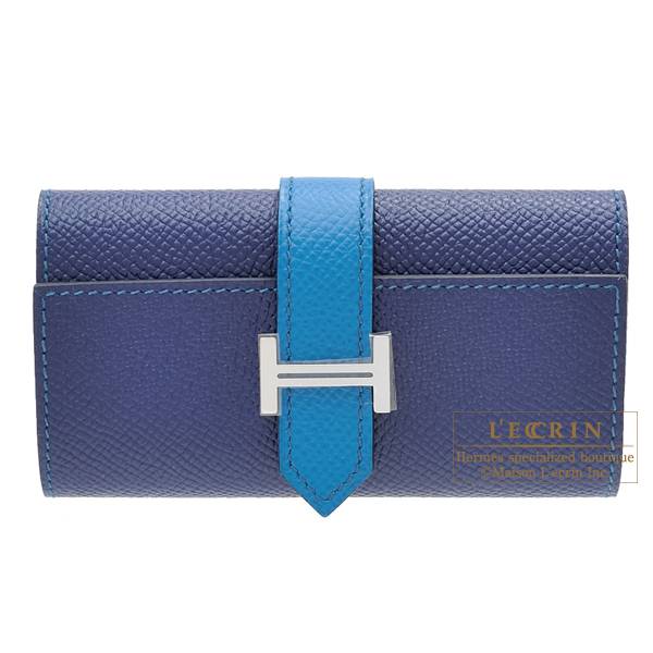 Hermes Bearn key case/4 key holder Bi-color Blue saphir/Blue izmir Epsom leather Silver hardware