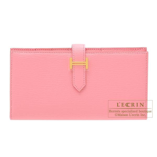 Hermes Bearn Soufflet Rose confetti Chevre myzore goatskin Gold hardware