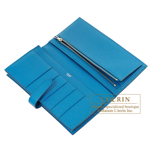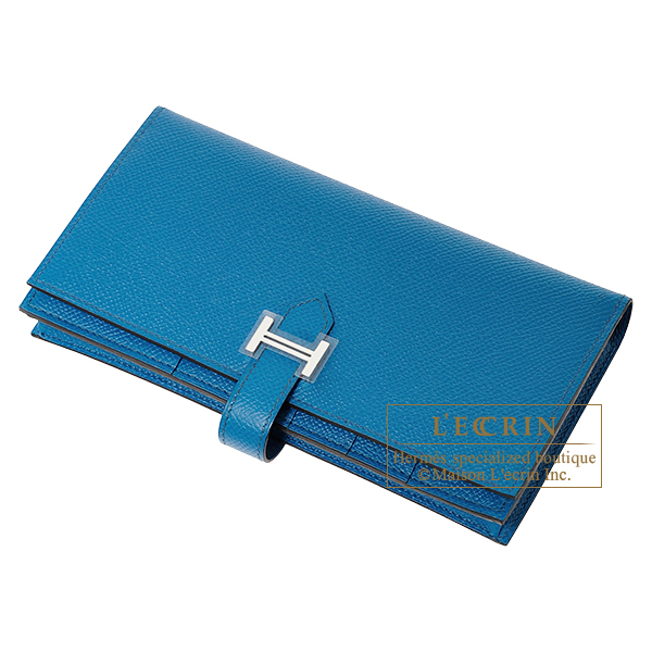 Hermes Bearn Soufflet Blue izmir Epsom leather Silver hardware