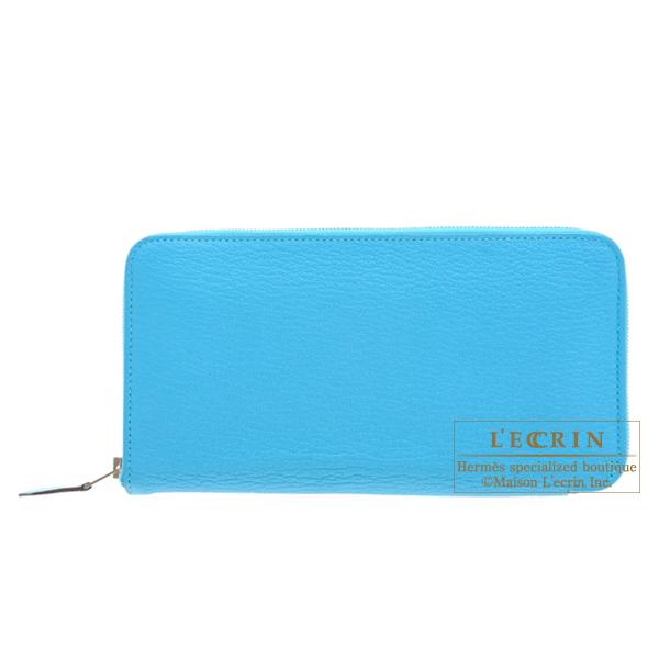 Hermes Azap long Blue aztec Chevre myzore goatskin Silver hardware