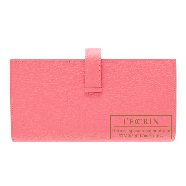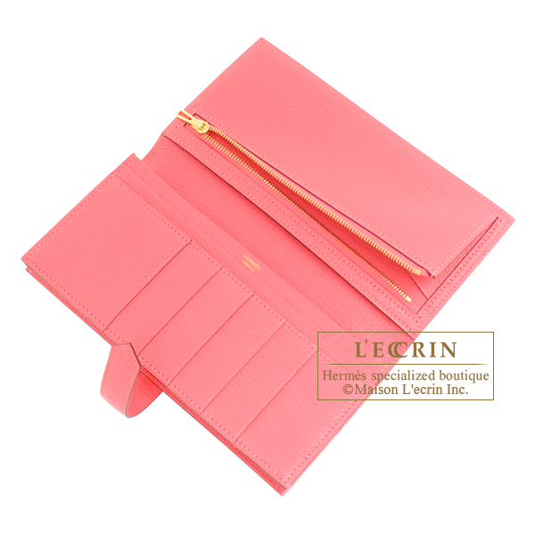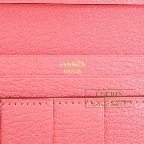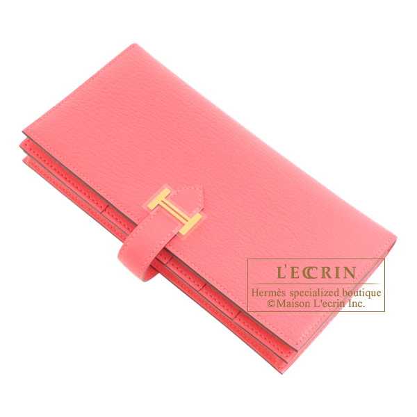 Hermes Bearn Soufflet Rose lipstick Chevre myzore goatskin Gold hardware