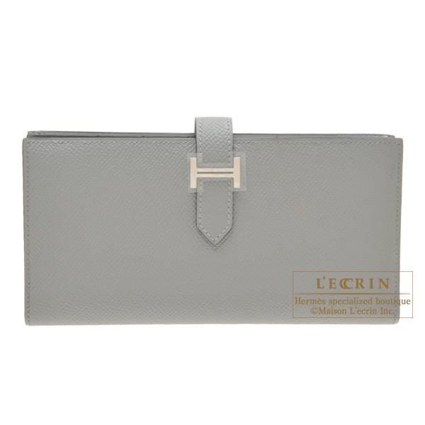 Hermes Bearn Soufflet Gris mouette Epsom leather Silver hardware