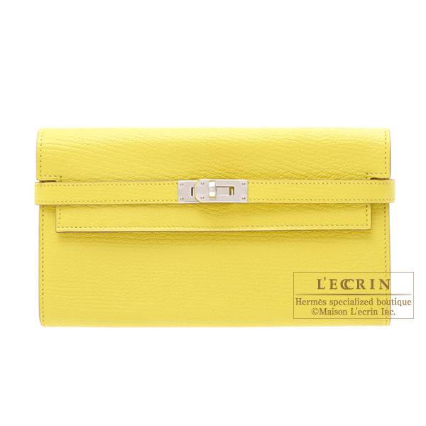 Hermes Kelly wallet long Lime Chevre myzore goatskin Silver hardware