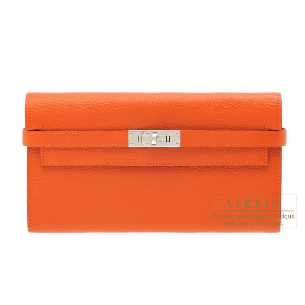 Hermes Kelly wallet long Feu Chevre myzore goatskin Silver hardware