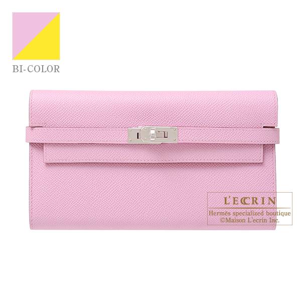 Hermes Kelly wallet long Verso Mauve sylvestre/Jaune de naples Epsom leather Silver hardware