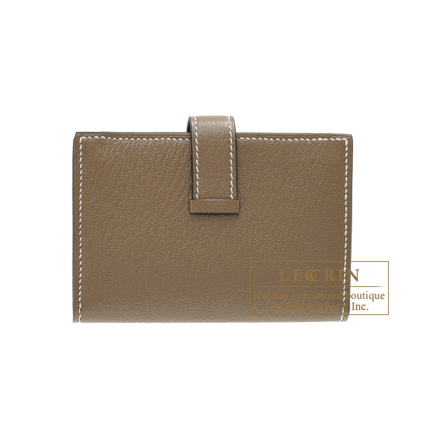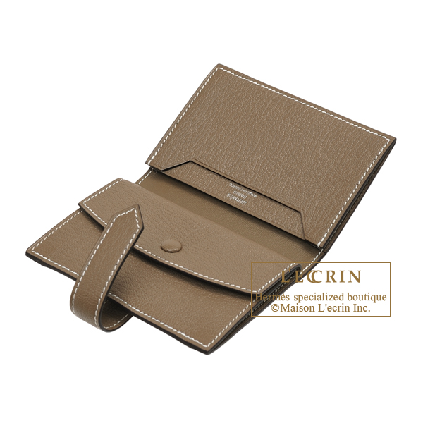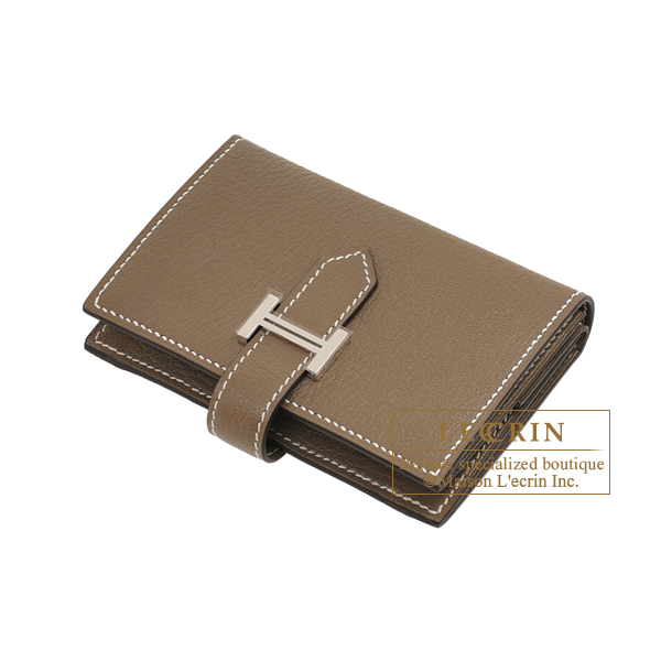 Hermes Bearn Mini wallet Etoupe grey Chevre myzore goatskin Silver hardware