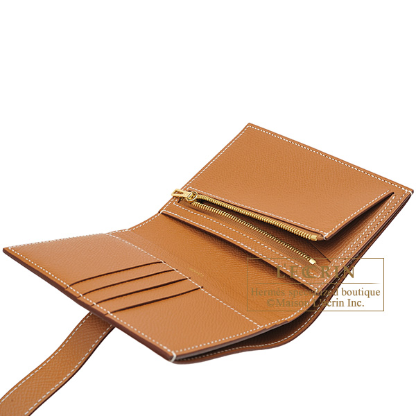 Hermes Bearn compact wallet Gold Epsom leather Gold hardware