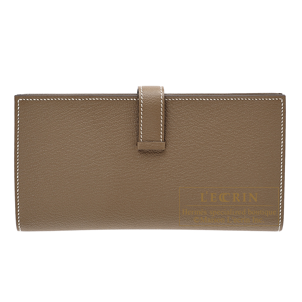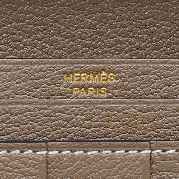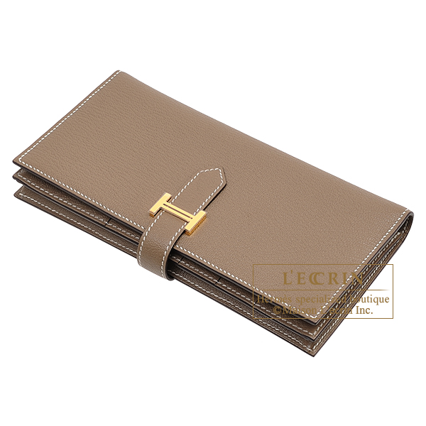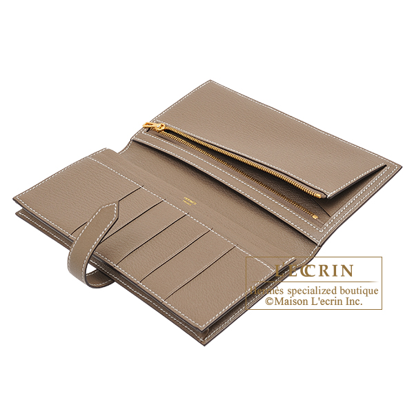 Hermes Bearn Soufflet Etoupe grey Chevre myzore goatskin Gold hardware