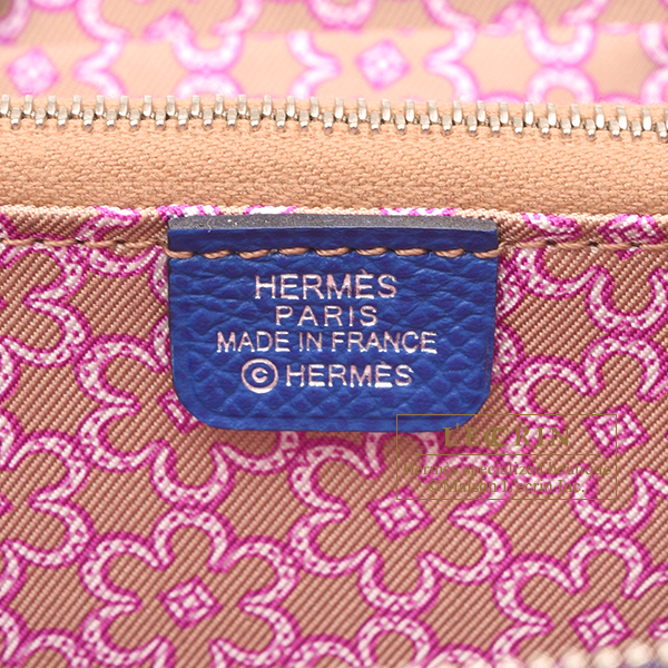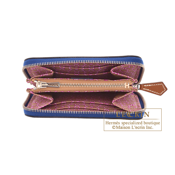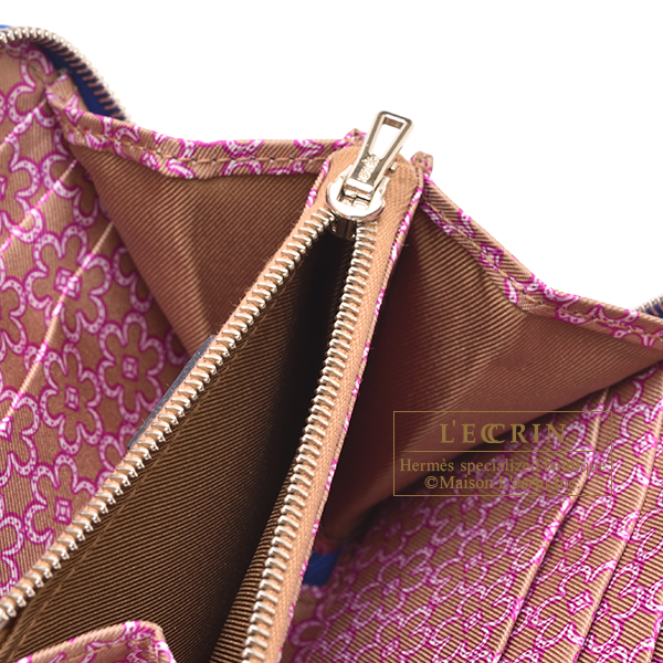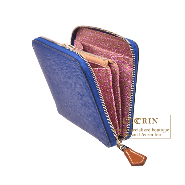 Hermes Azap Silk In Compact Blue royal/ Chai Epsom leather/Silk Silver hardware