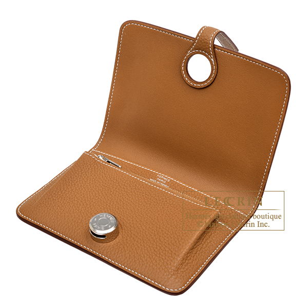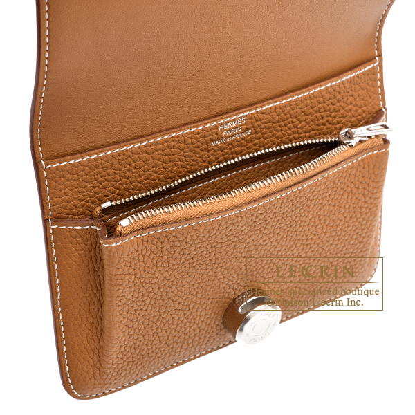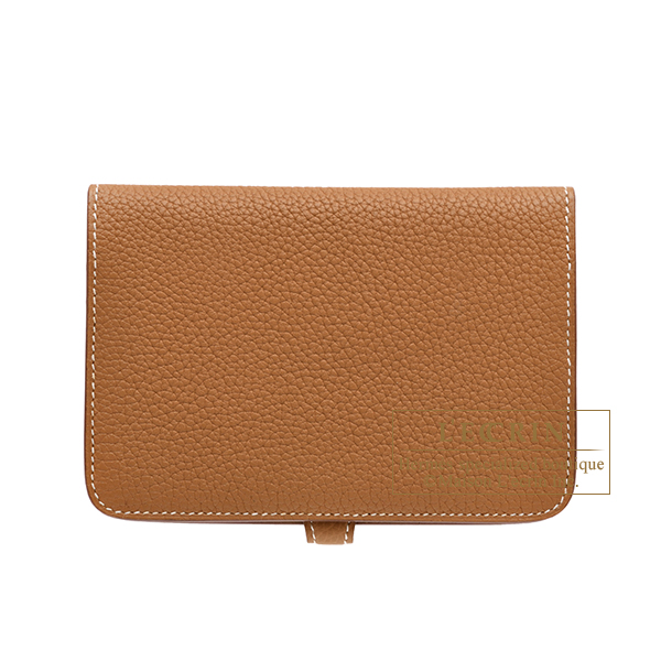 Hermes Dogon compact wallet Gold Togo leather Silver hardware