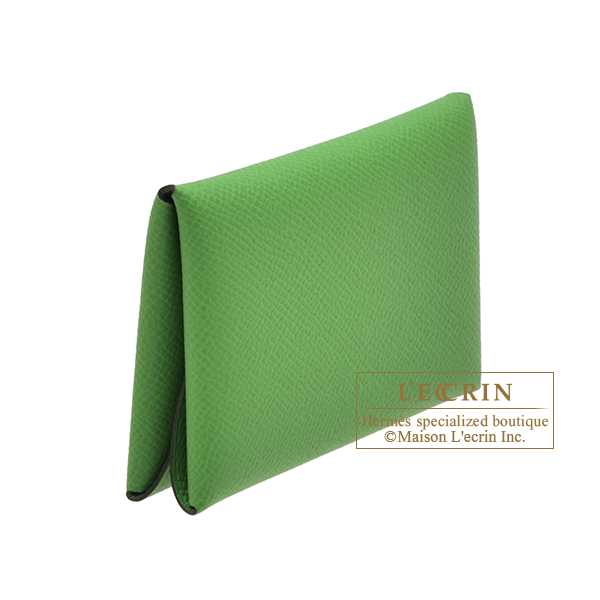 Hermes Calvi Duo Vert yucca Epsom leather Silver hardware