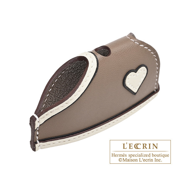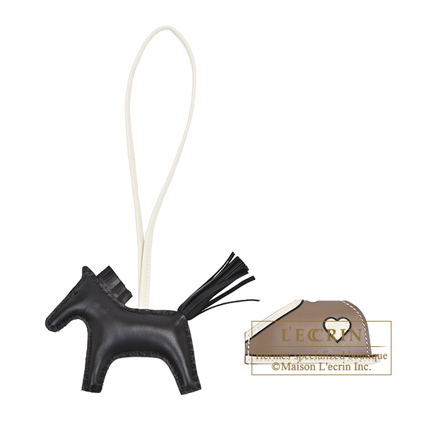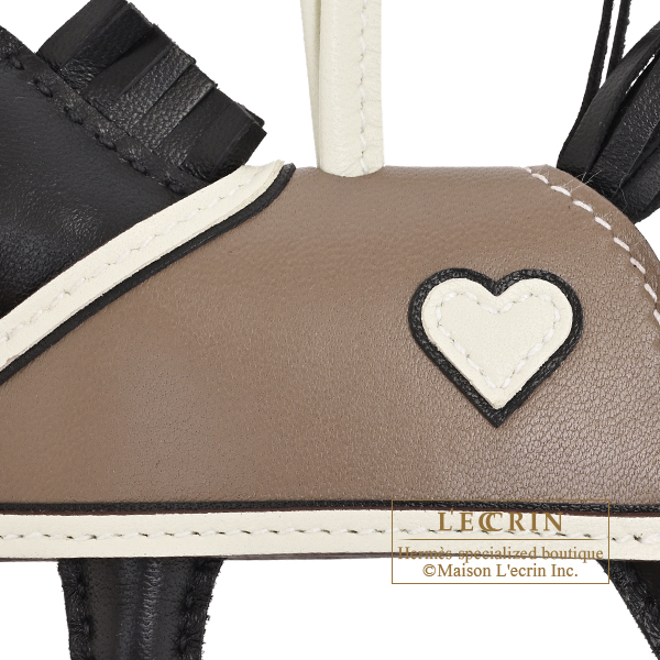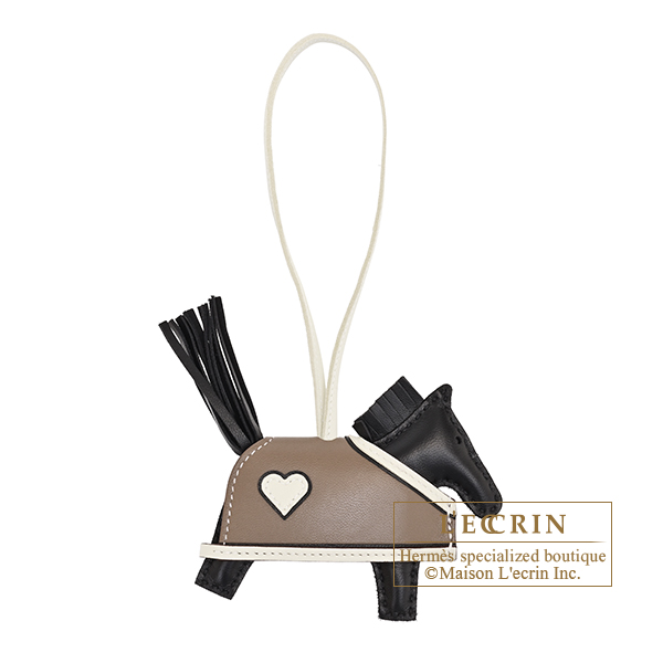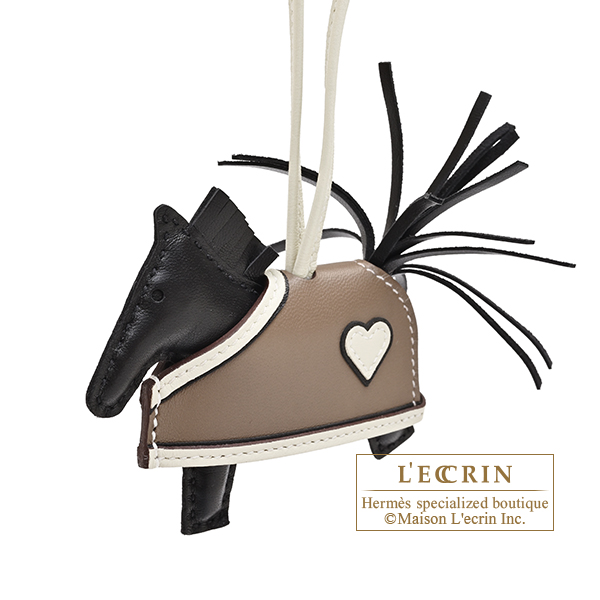 Hermes Rodeo charm Robeo Coeur PM Black/Craie/Etoupe grey Agneau/Swift leather