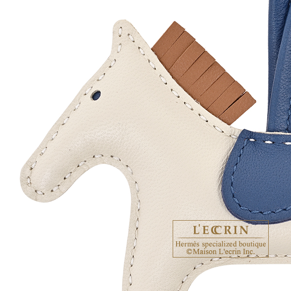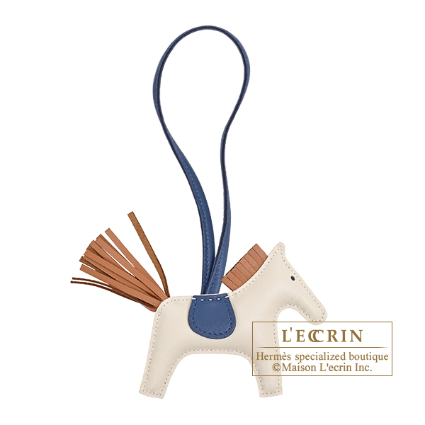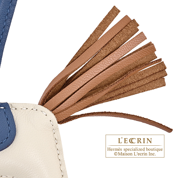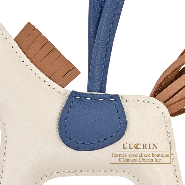 Hermes Rodeo charm PM Craie/Gold/Blue tie Agneau