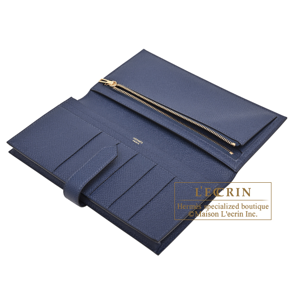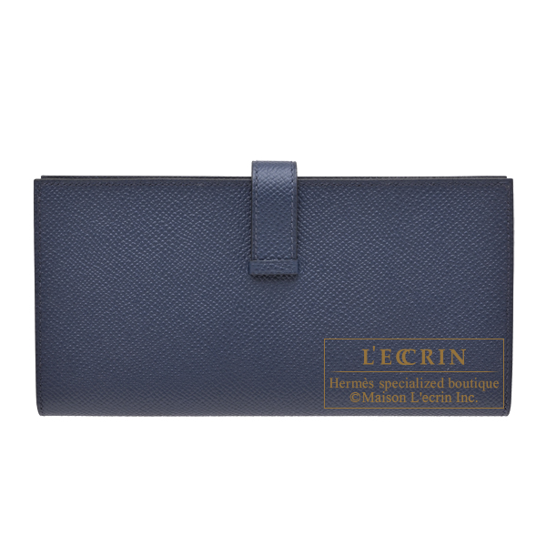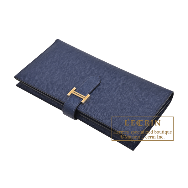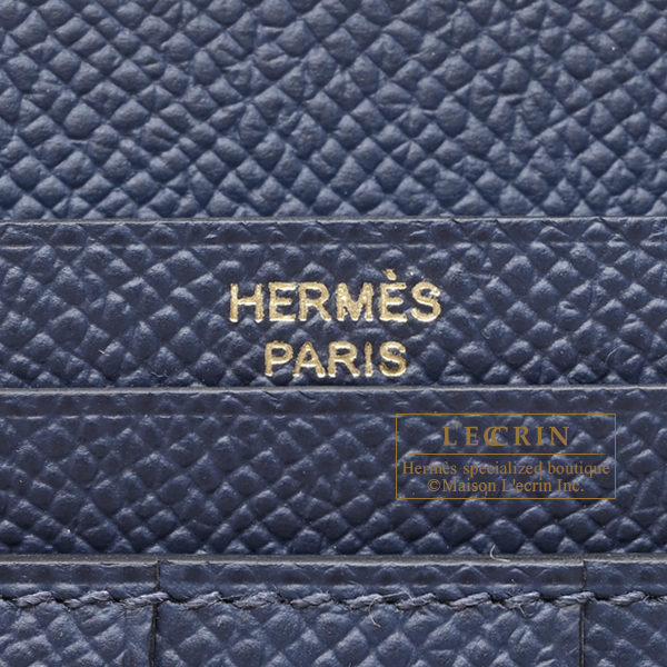 Hermes Bearn Soufflet Blue navy Epsom leather Gold hardware