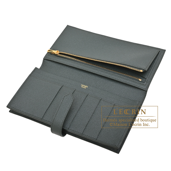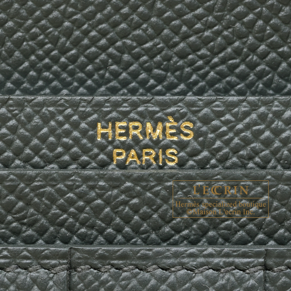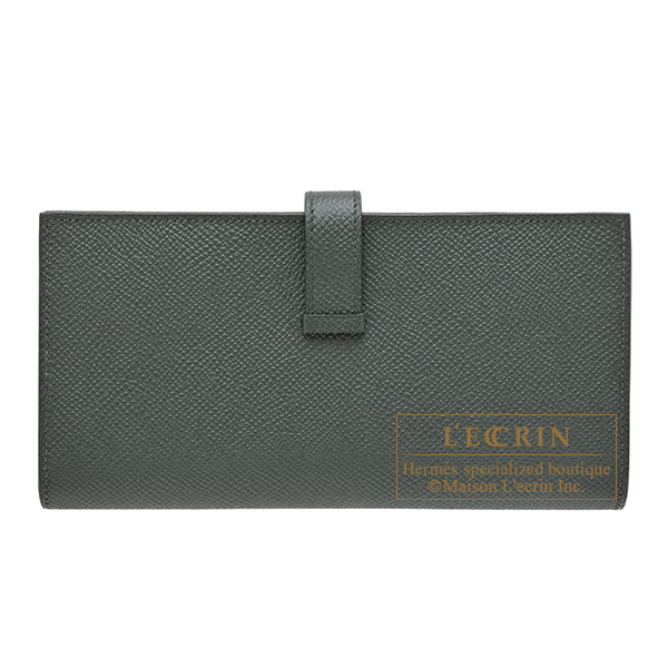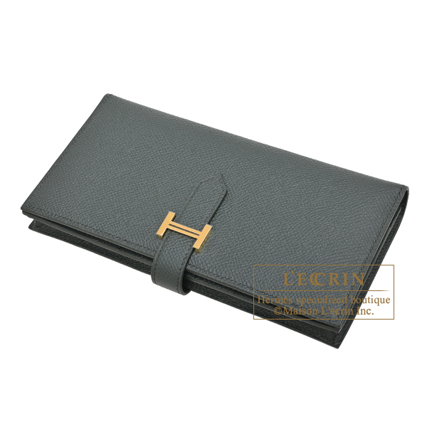 Hermes Bearn Soufflet Vert mangrove Epsom leather Gold hardware