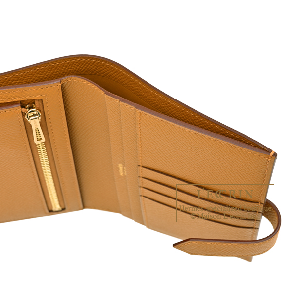 Hermes Bearn compact wallet Sesame Epsom leather Gold hardware