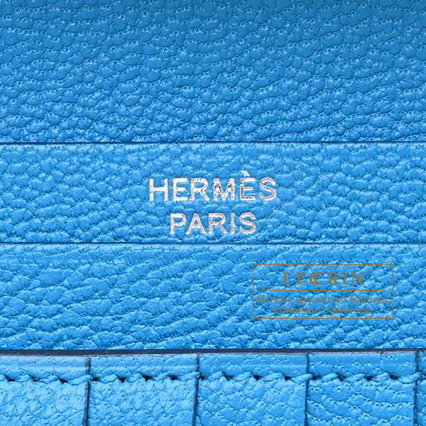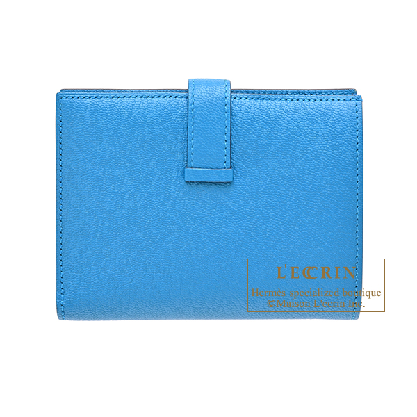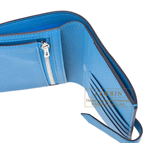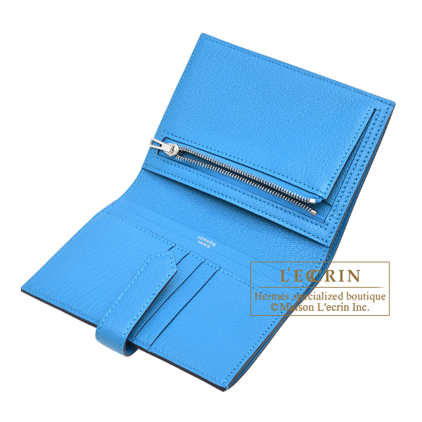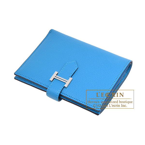 Hermes Bearn compact wallet Blue zanzibar Chevre myzore goatskin Silver hardware