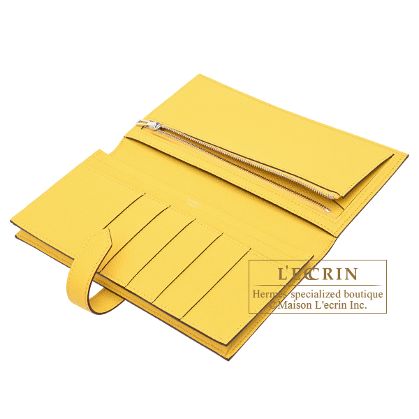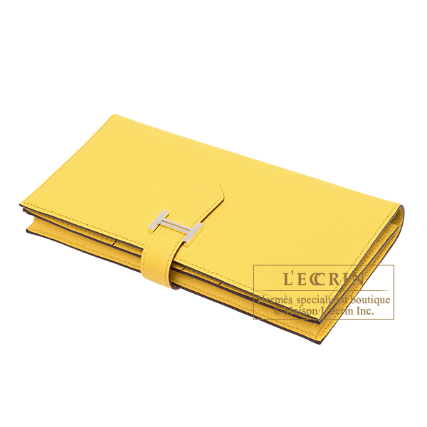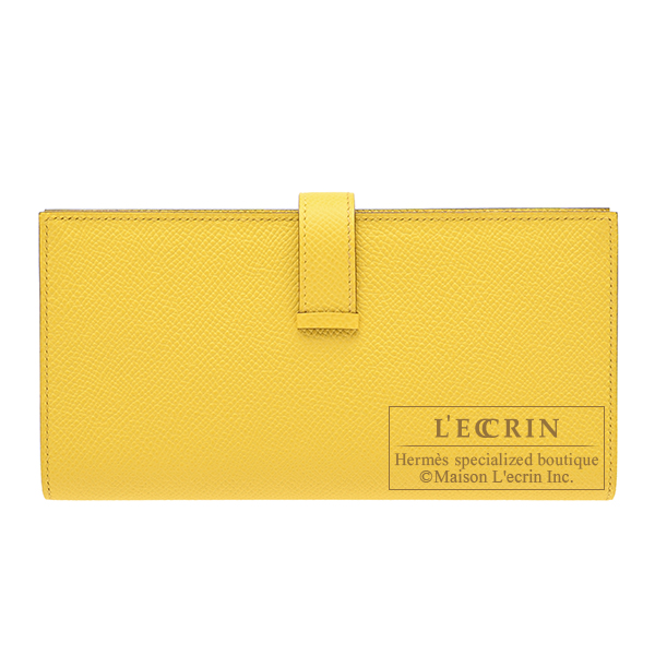 Hermes Bearn Soufflet Jaune de naples Epsom leather Silver hardware