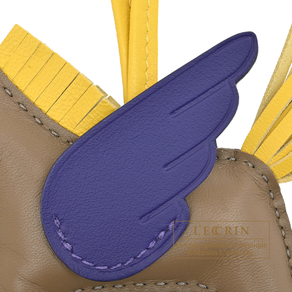 Hermes Rodeo charm Pegasus PM Etoupe grey/Jaune de naples/Purple Agneau/Swift