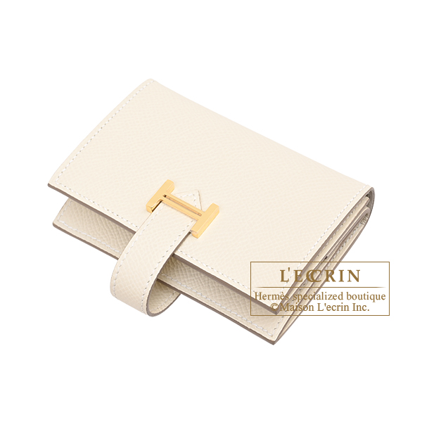 Hermes Bearn Mini wallet Craie Epsom leather Gold hardware