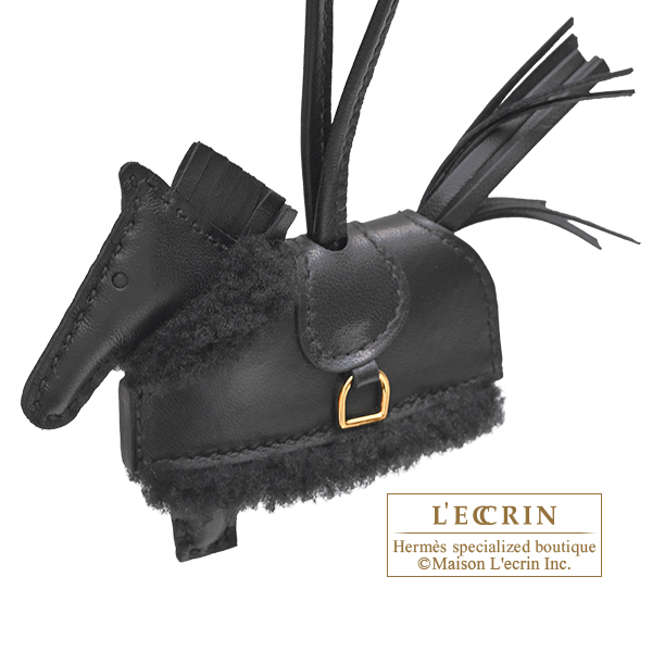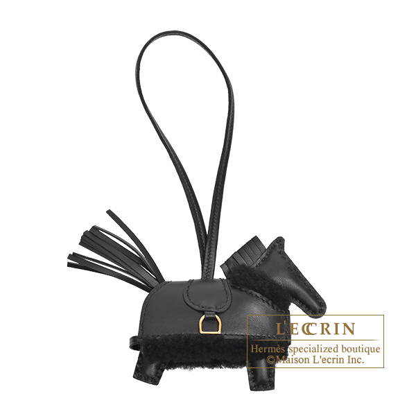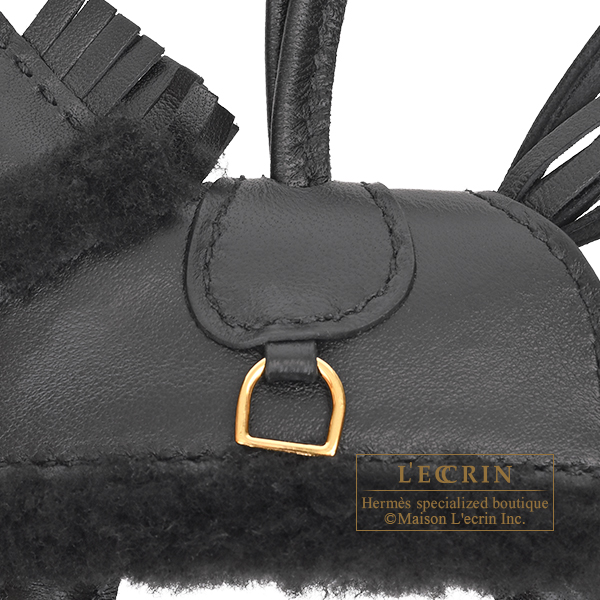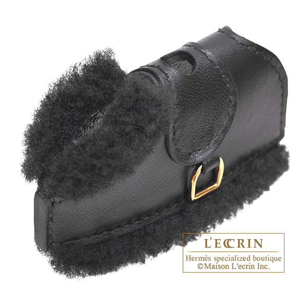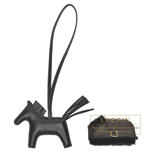 Hermes Rodeo charm Robeo Plush PM Black Agneau/Swift leather/Merinos wool Gold hardware