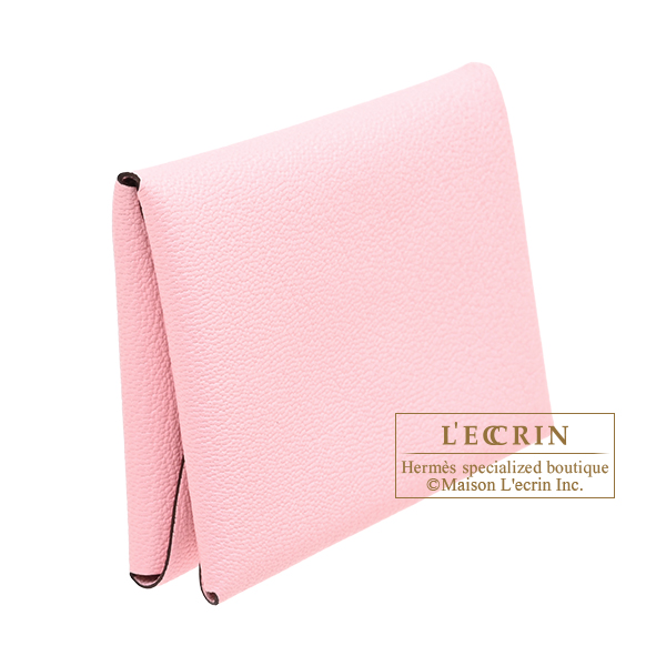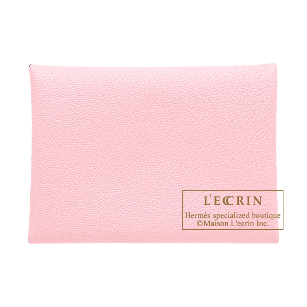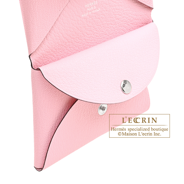 Hermes Calvi Duo Rose sakura Chevre myzore goatskin Silver hardware