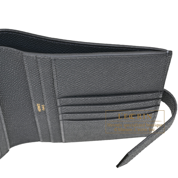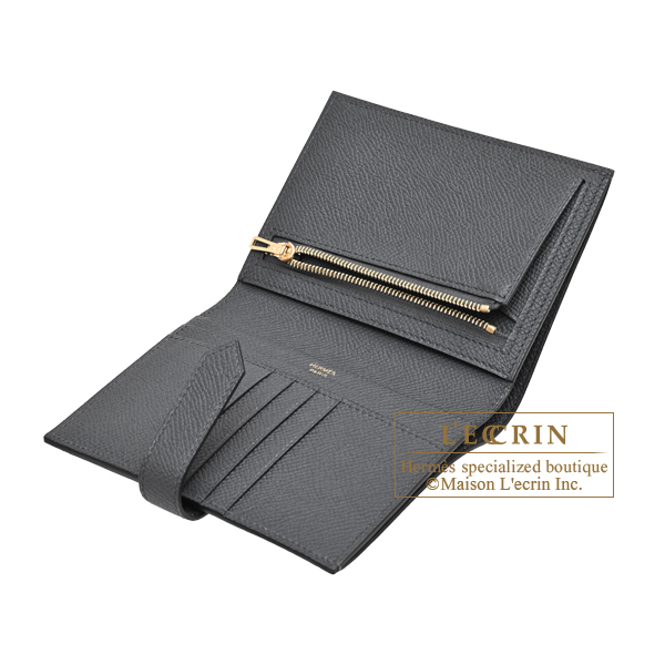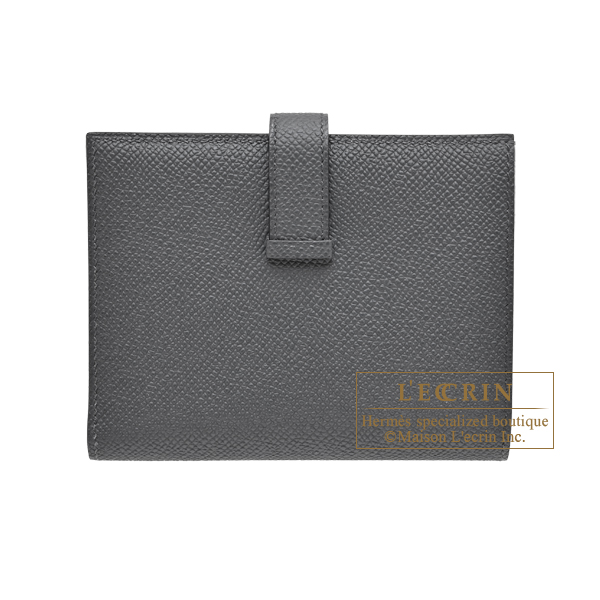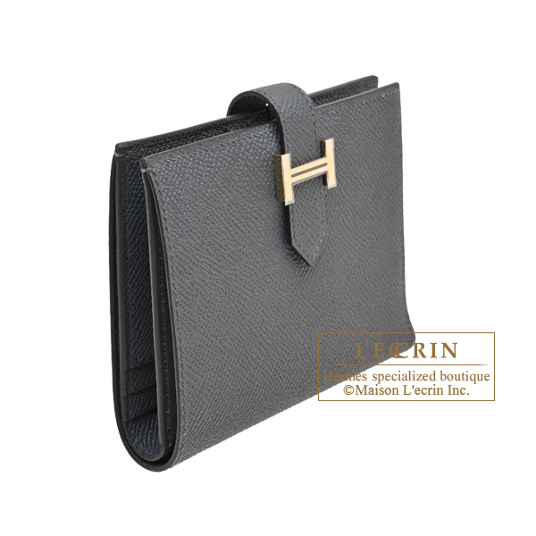 Hermes Bearn compact wallet Gris misty Epsom leather Champagne gold hardware