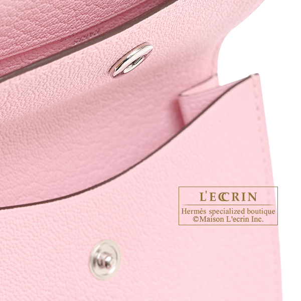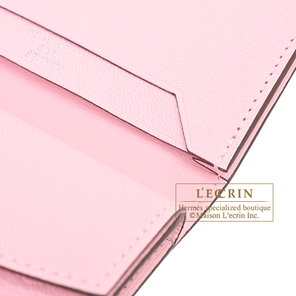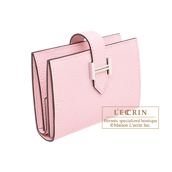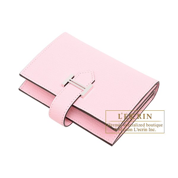 Hermes Bearn Mini wallet Rose sakura Chevre myzore goatskin Silver hardware