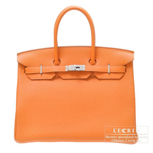 Hermes Birkin bag 35 Orange Clemence leather Silver hardware