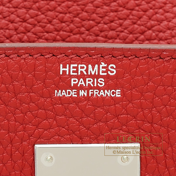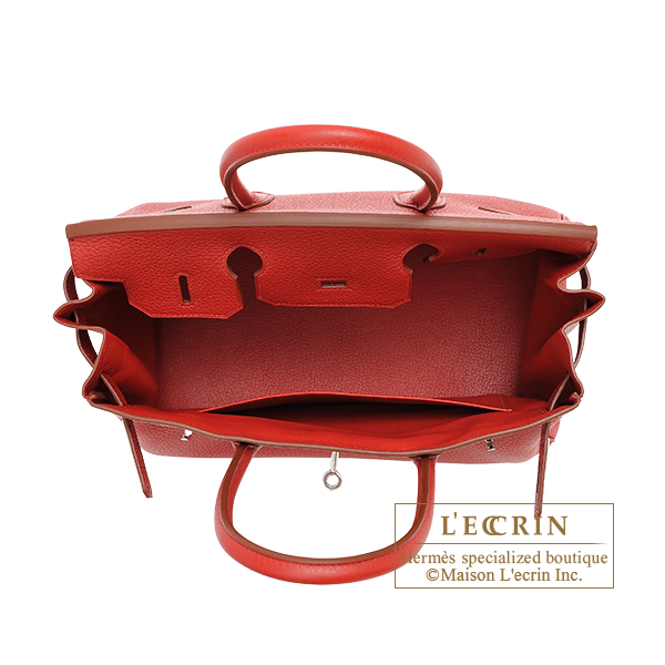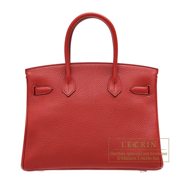 Hermes Birkin bag 30 Rouge garance Clemence leather Silver hardware