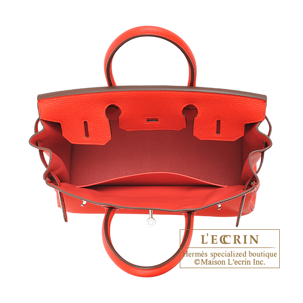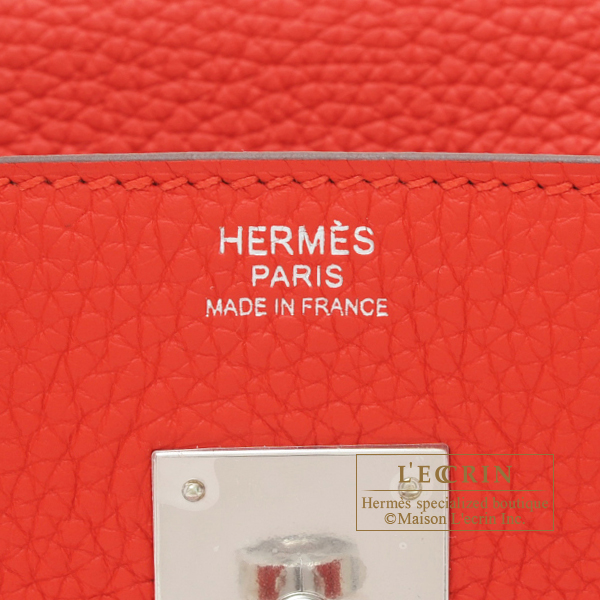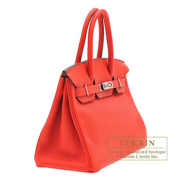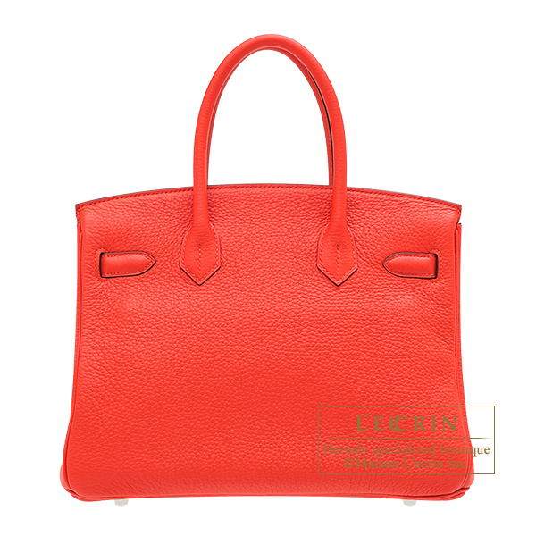 Hermes Birkin bag 30 Rouge tomate Clemence leather Silver hardware