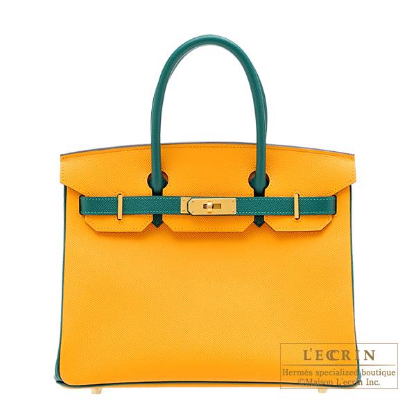 Hermes Personal Birkin bag 30 Jaune d'or/ Malachite Epsom leather Matt gold hardware