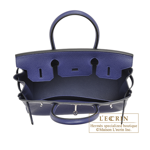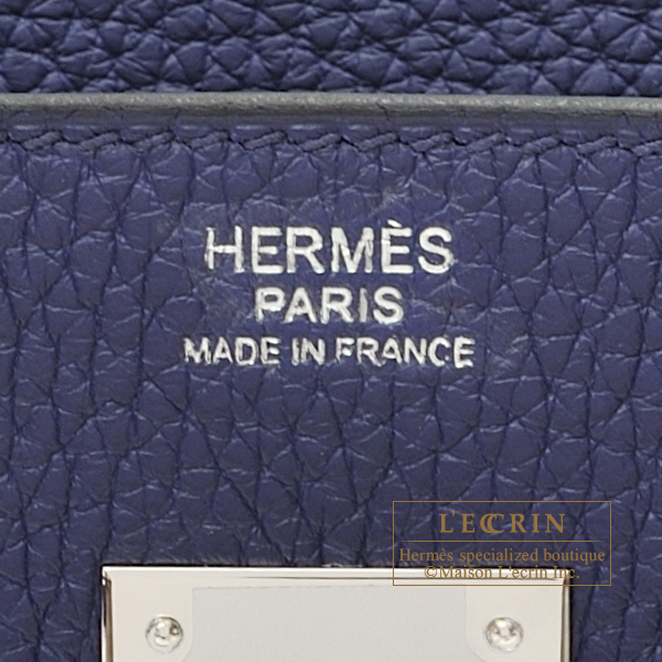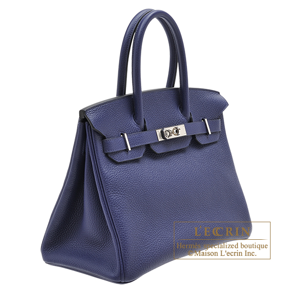 Hermes Birkin bag 30 Blue encre Clemence leather Silver hardware