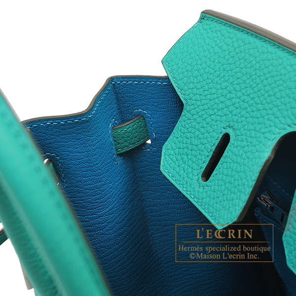 Hermes Birkin Verso bag 25 Vert verone/ Blue izmir Togo leather Silver hardware