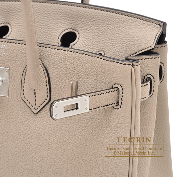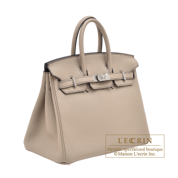 Hermes Personal Birkin bag 25 Gris tourterelle/ Black Togo leather Matt silver hardware Black stitch