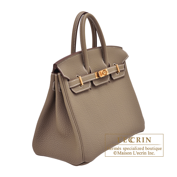 Hermes Birkin bag 25 Etoupe grey Togo leather Gold hardware