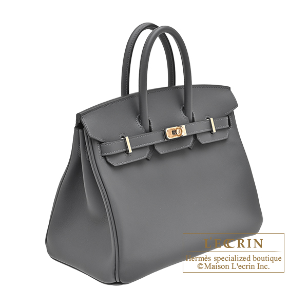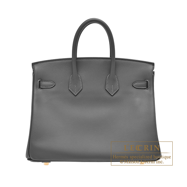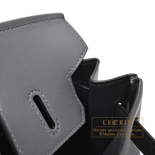 Hermes Birkin Verso bag 25 Gris misty/Black Swift leather Champagne gold hardware