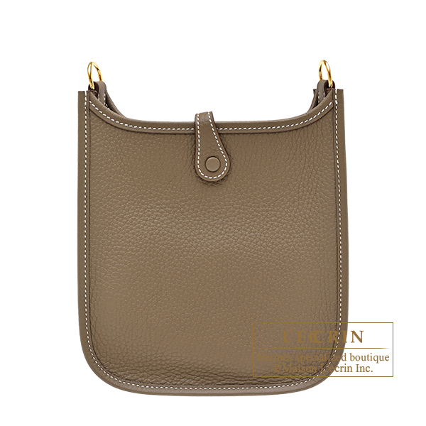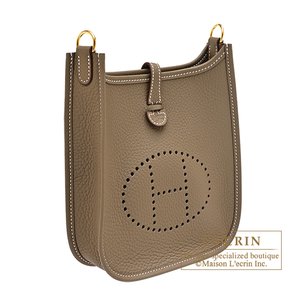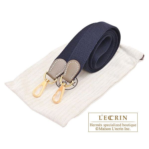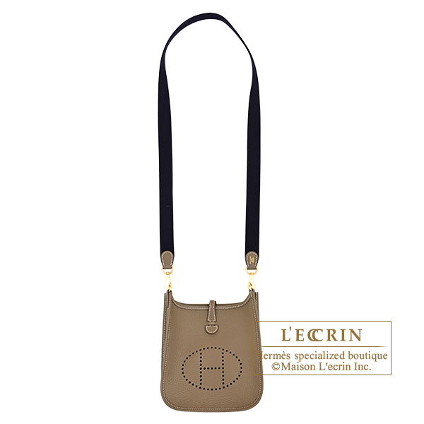 Hermes Evelyne Amazon bag TPM Etoupe grey/ Blue indigo Clemence leather Gold hardware Bandouliere 111cm