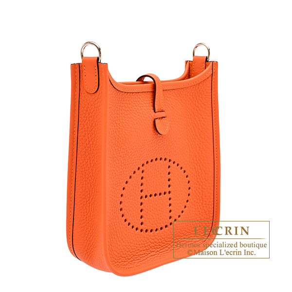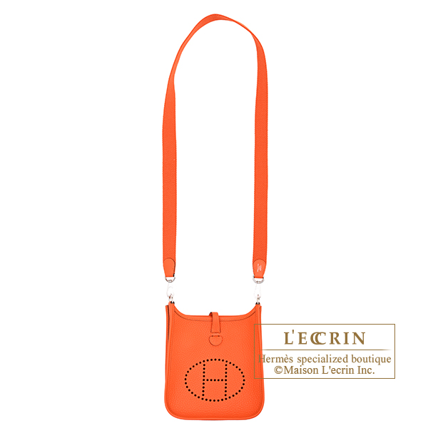 Hermes Evelyne Amazon bag TPM Orange poppy Clemence leather Silver hardware Bandouliere 111cm