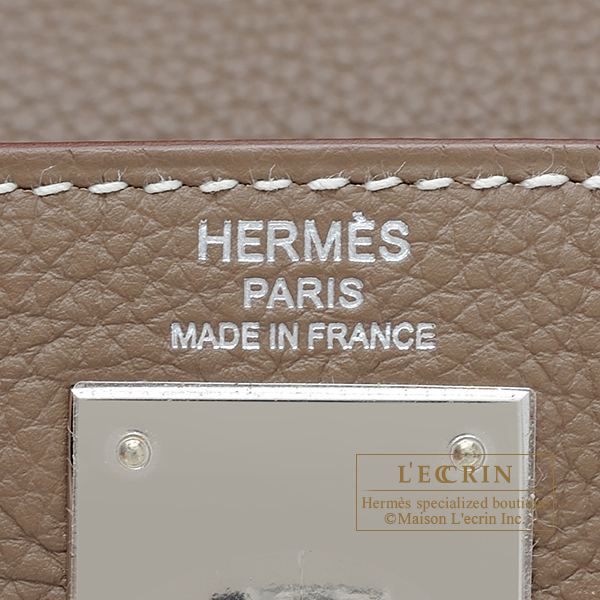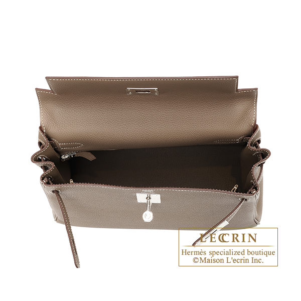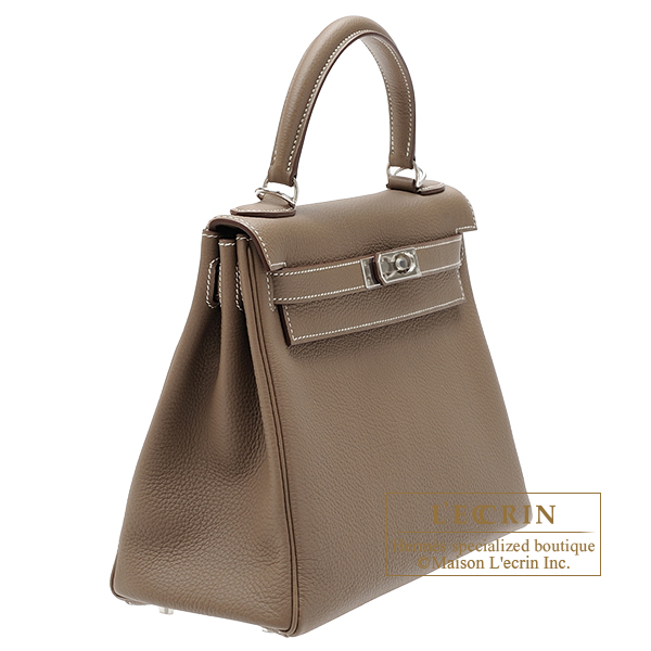 Hermes Kelly bag 28 Retourne Etoupe grey Togo leather Silver hardware