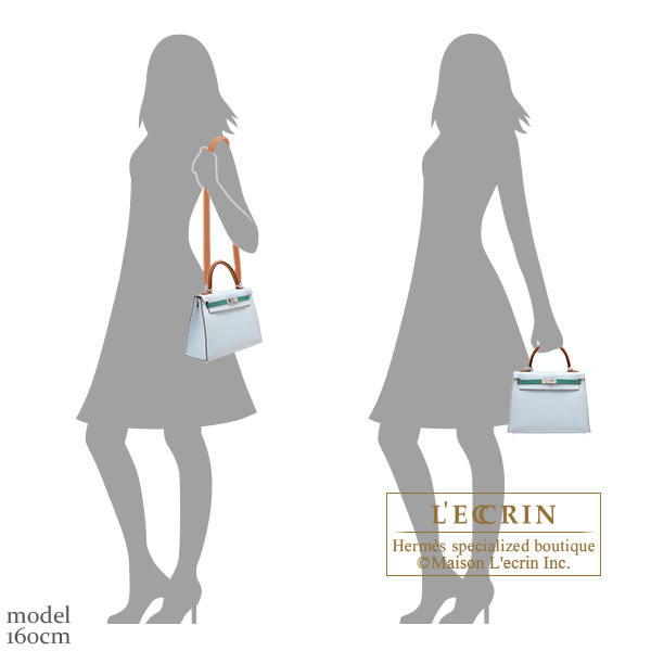 Hermes Kelly Tricolore bag 25 Sellier Blue brume/Vert Jade/Gold Epsom leather Silver hardware