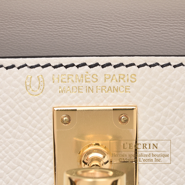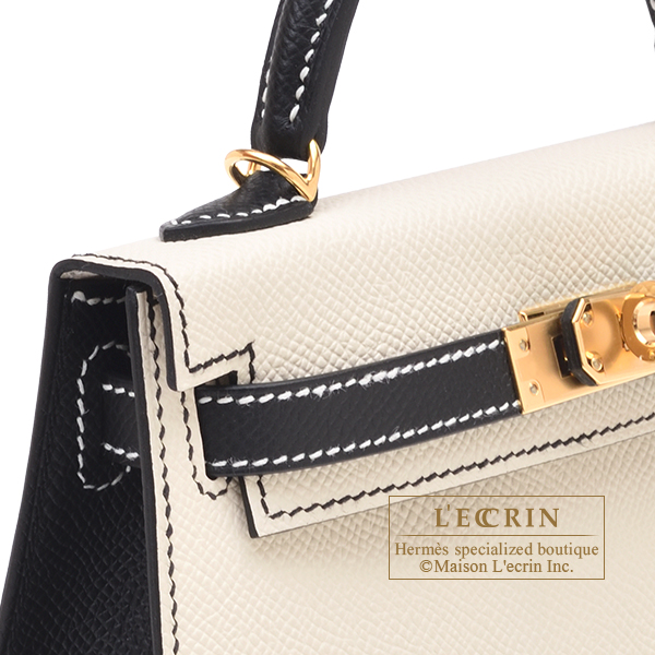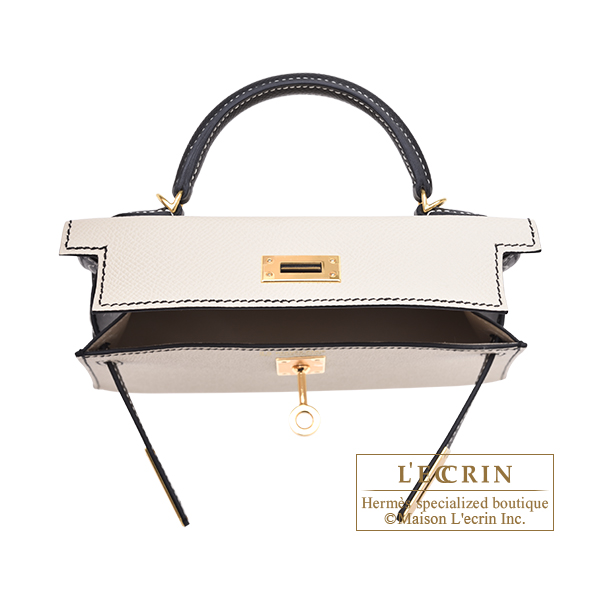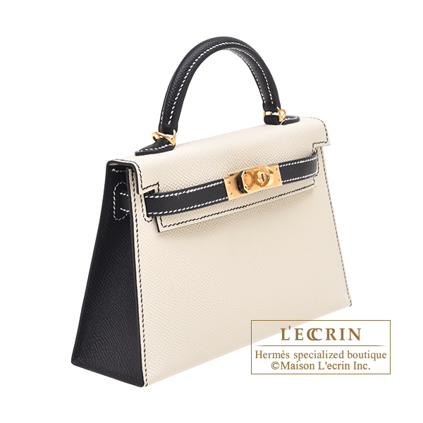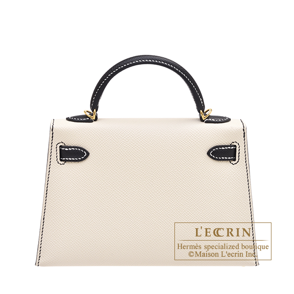 Hermes Personal Kelly bag mini Sellier Craie/Black Epsom leather Gold hardware