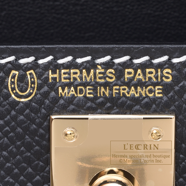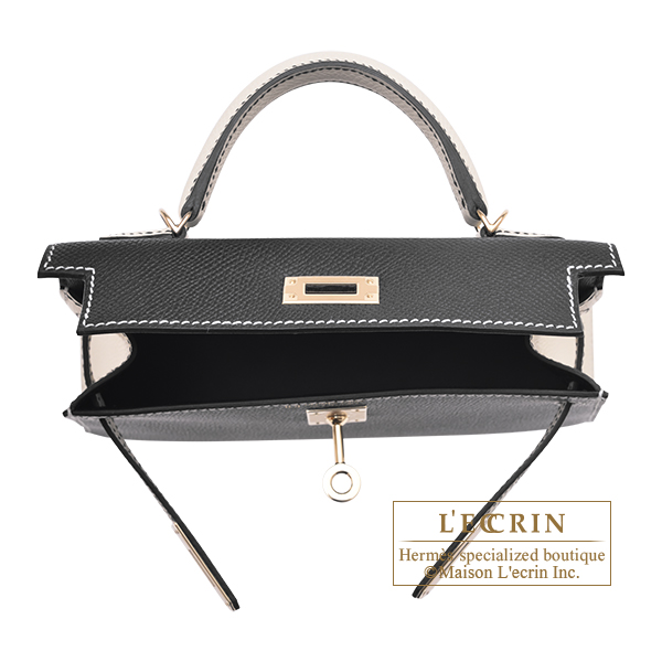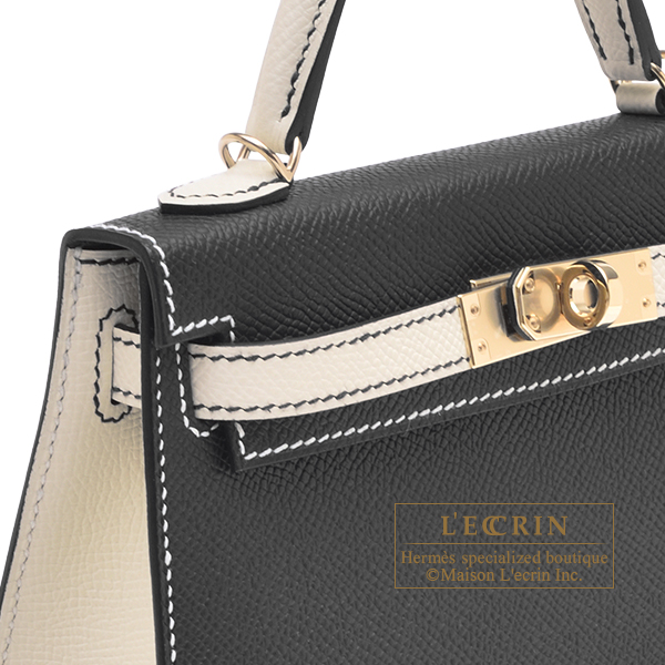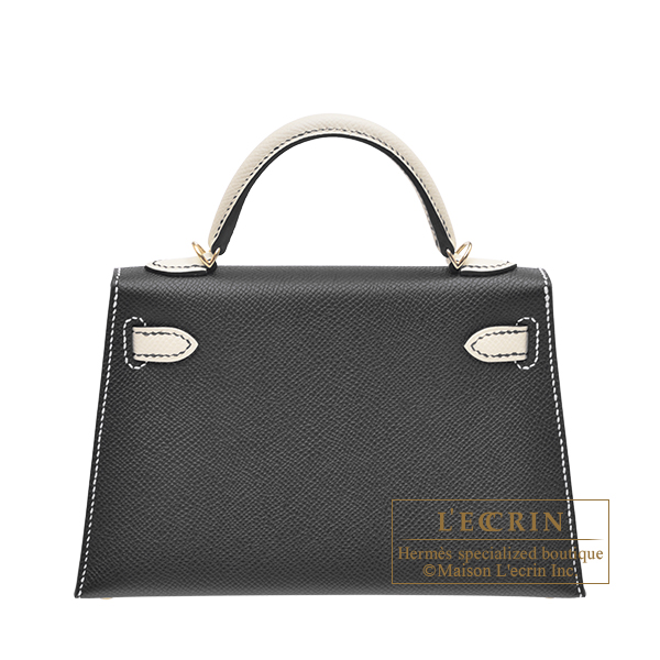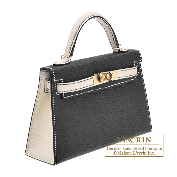 Hermes Personal Kelly bag mini Sellier Black/Nata Epsom leather Champagne gold hardware