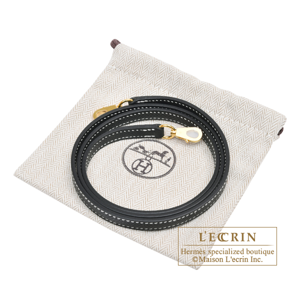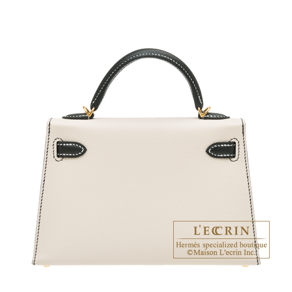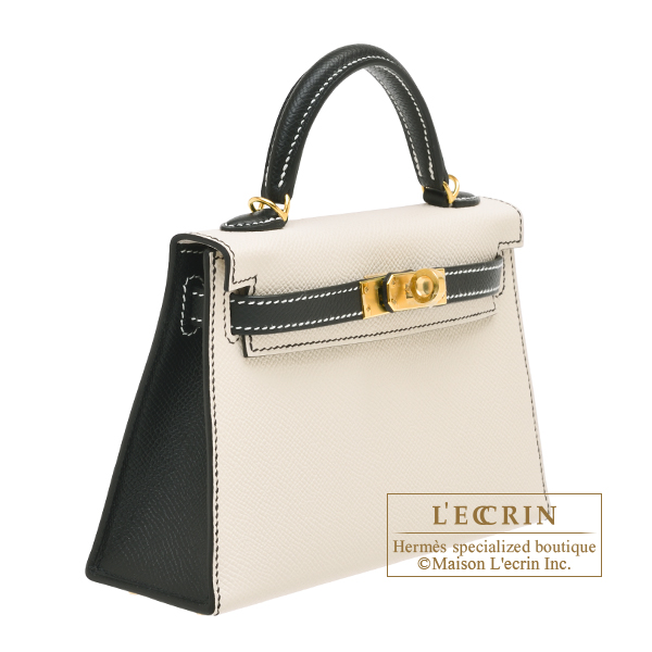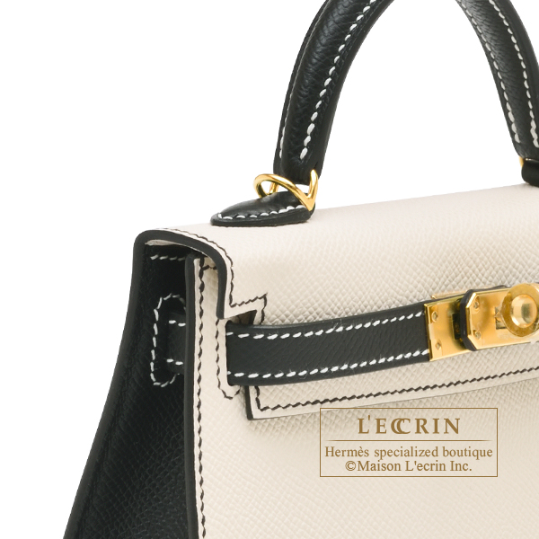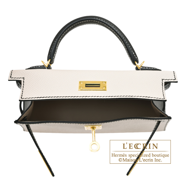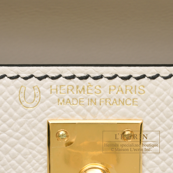 HERMES Personal Kelly bag mini Sellier Craie/Black Epsom leather Gold hardware Shoulder strap 90cm