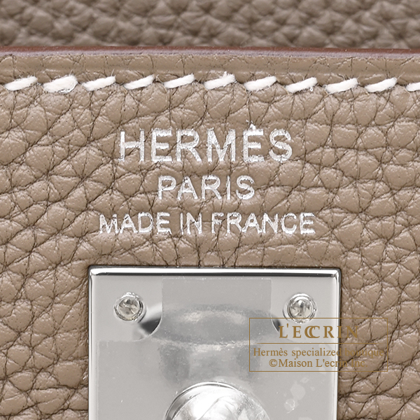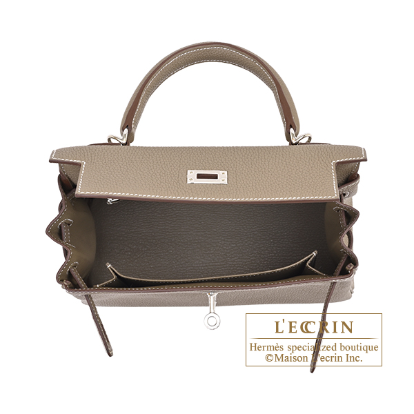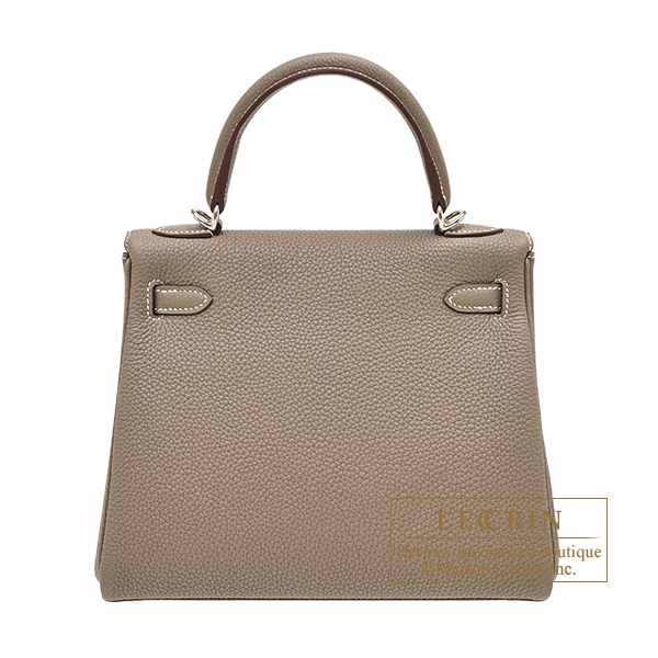 Hermes Kelly bag 25 Retourne Etoupe grey Togo leather Silver hardware