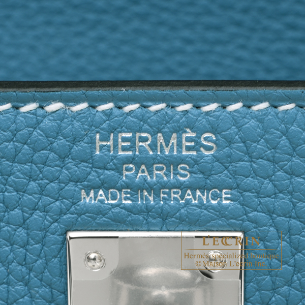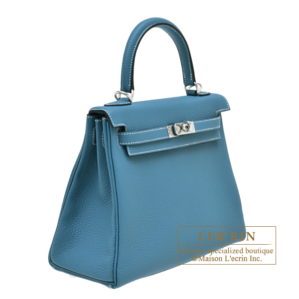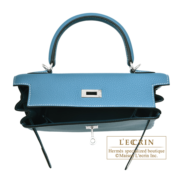 Hermes Kelly bag 25 Retourne New blue jean Togo leather Silver hardware