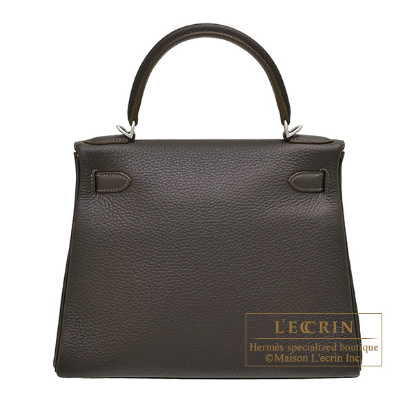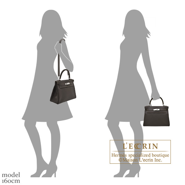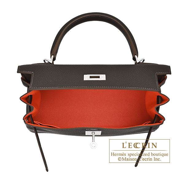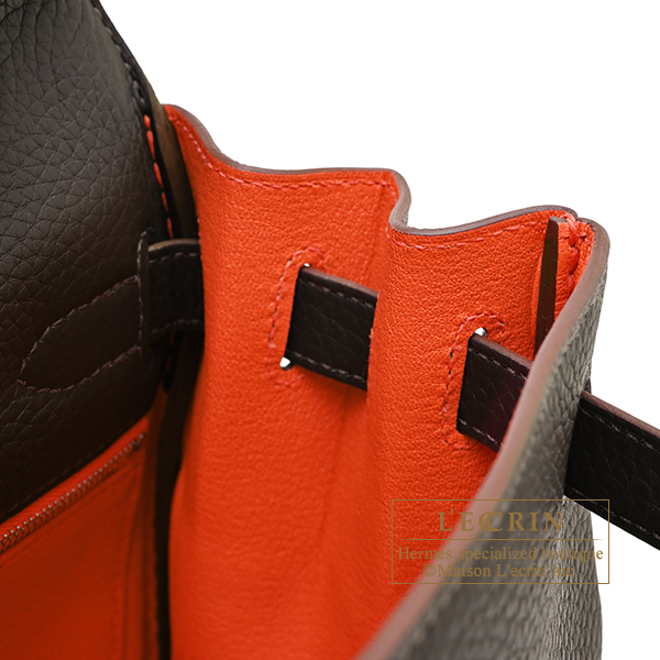 Hermes Personal Kelly bag 28 Retourne Macassar/ Orange poppy Clemence leather Matt silver hardware